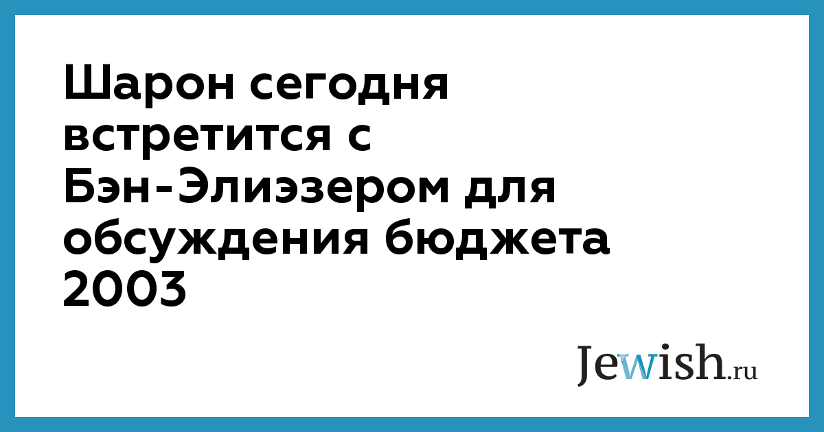 Шарон сегодня встретится с Бэн-Элиэзером для обсуждения бюджета 2003