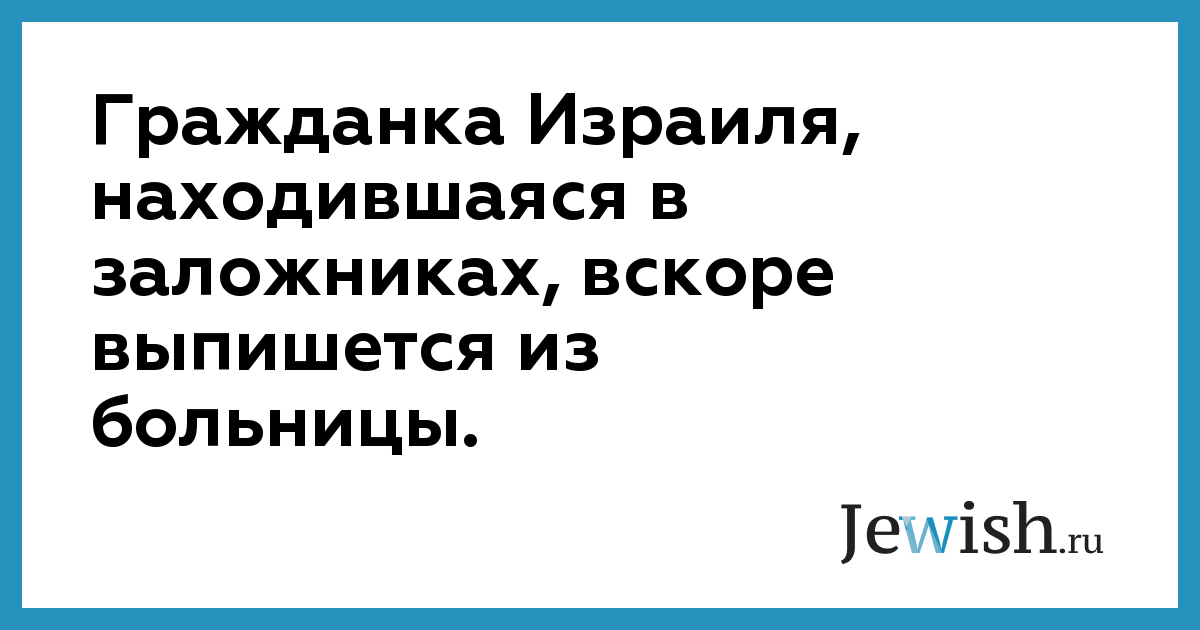 Гражданка Израиля, находившаяся в заложниках, вскоре выпишется из больницы.
