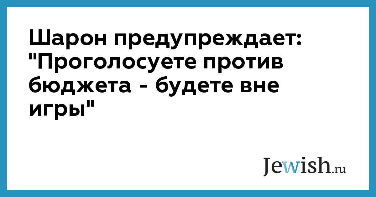 Шарон предупреждает: "Проголосуете против бюджета — будете вне игры"