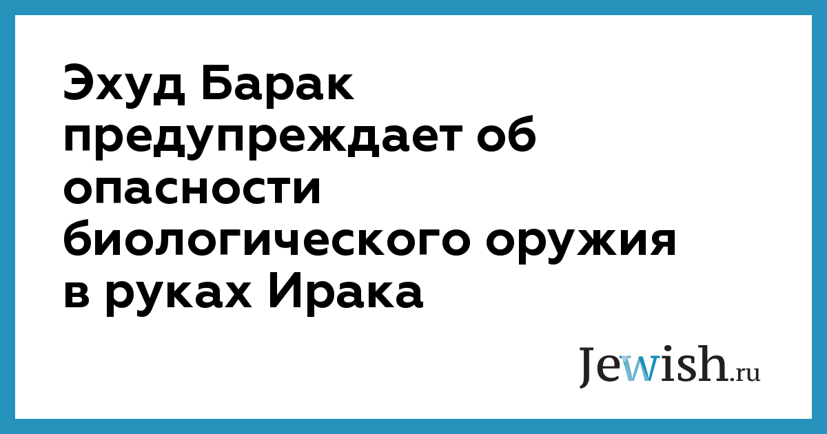 Президент Ирака Саддам Хусейн пытается разработать биологическое оружие типа бацилл сибирской язвы и других опасных болезней, однако у него недостаточно средств доставки такого оружия. С таким заявлением выступил бывший премьер-министр Израиля Эхуд Барак. "Мы знаем, что он старается использовать сибирскую язву, ботулизм, и ряд других смертельных бактерий, а также химические вещества", — заявил Э.Барак. Бывший премьер считает, что сегодня Ирак имеет больше подобного оружия, чем во время войны в Персидском заливе, однако он имеет всего один-два десятка ракет для доставки таких боеголовок. Э.Барак не привел никаких дополнительных свидетельств, подтверждающих его утверждение. В тоже время Багдад сам заявил международным инспекторам, что в свое время он произвел 2200 галлонов спор сибирской язвы, также как и яда, вызывающего ботулизм. Инспекторы ООН не смогли в свое время подтвердить, что Ирак уничтожил все свои запасы биологического оружия.