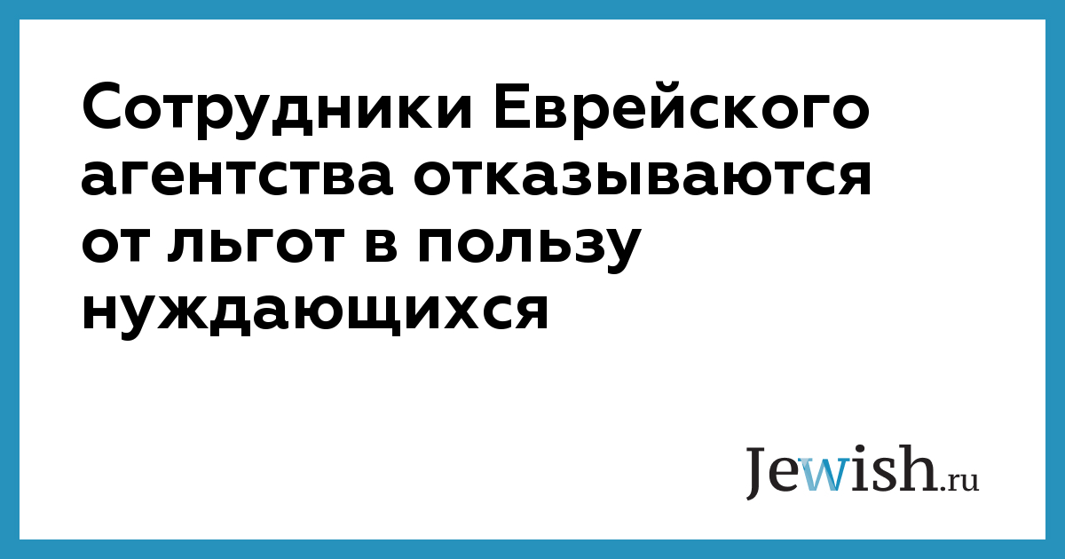 Рабочий комитет Еврейского агентства принял решение об отказе от 10% положенных сотрудникам агентства льгот в пользу нуждающихся семей. Основной упор будет сделан на улучшение положения детей. Председатель рабочего совета Йона Бецалели сообщил, что этот шаг вызван серьезным падением жизненного уровня экономически слабых слоев населения. Многие многодетные семьи оказываются сегодня за чертой бедности. 10 процентов участников семинаров конца недели, которые регулярно проводятся для сотрудников Агентства, составят дети из нуждающихся семей, не имеющие возможности выехать с родителями в места отдыха. Рабочий комитет создаст специальные склады, которые будут принимать пожертвованные сотрудниками Агентства одежду, мебель и электроприборы. «Инициатива оказания материальной помощи многодетным семьям исходит от коллектива сотрудников, – пояснил Бецалели. – Каждый из нас видит в облегчении положения нуждающихся свой нравственный и общественный долг. Многие из наших сотрудников обратились в последнее время в Рабочий комитет с предложением сделать отчисления от своей зарплаты в фонд помощи нуждающимся».