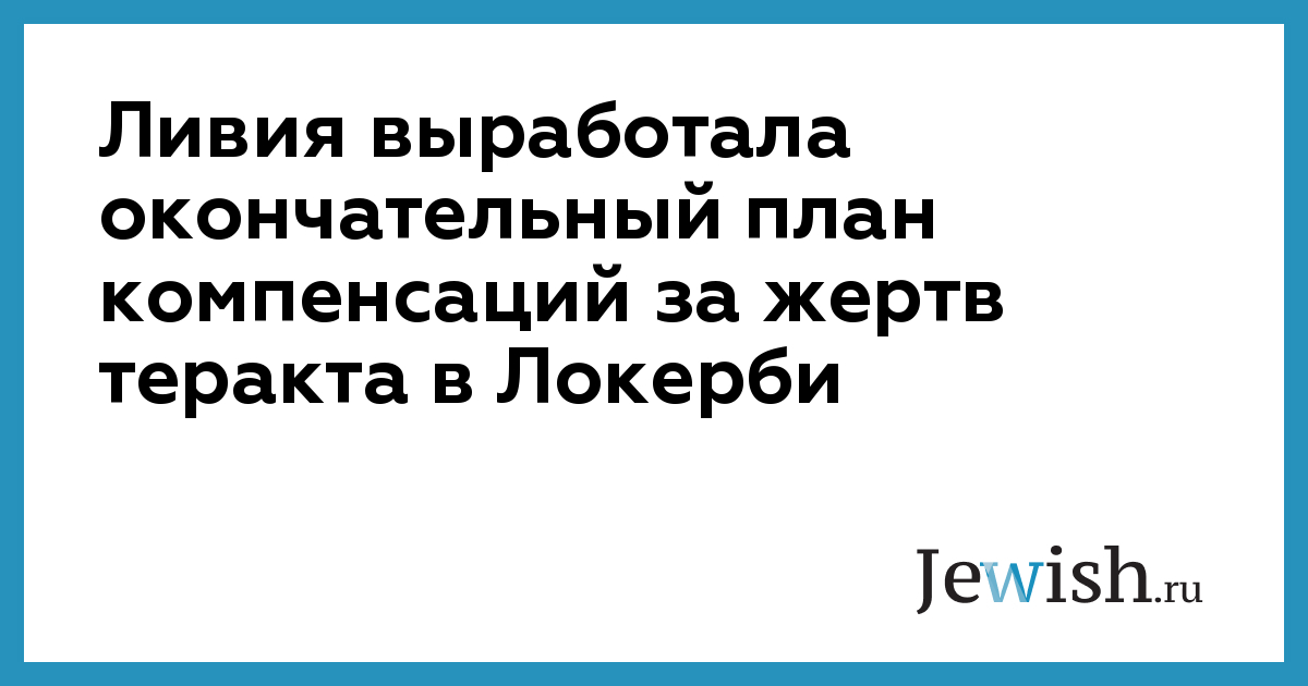 Адвокаты, представляющие Ливию, подписали во вторник последнюю версию предложения о материальной компенсации родственникам жертв теракта в Локерби в 1988 году. В результате взрыва Boeing 747 авиакомпании Pan American палестинскими и ливийскими террористами погибли 270 человек (259 пассажиров самолета и 11 жителей Локерби). Согласно распространенному среди родных пассажиров самолета заявлению, адвокатская фирма Kreindler and Kreindler внесла некоторые изменения в предложение о выплате компенсаций, обнародованное в августе. Согласно предложению Ливии, родственники получат до $10 млн за каждого из пассажиров. Главные изменения заключаются в том, что счет, на который Ливия будет перечислять деньги, останется открытым в течение восьми месяцев (этот срок может быть продлен). Если в течение этого времени не будут наложены какие-либо санкции, счет закроется, Ливия заберет свои деньги, а родственникам придется обратиться в суд за компенсацией.