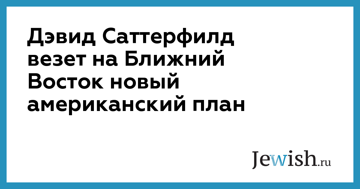 Дэвид Саттерфилд везет на Ближний Восток новый американский план