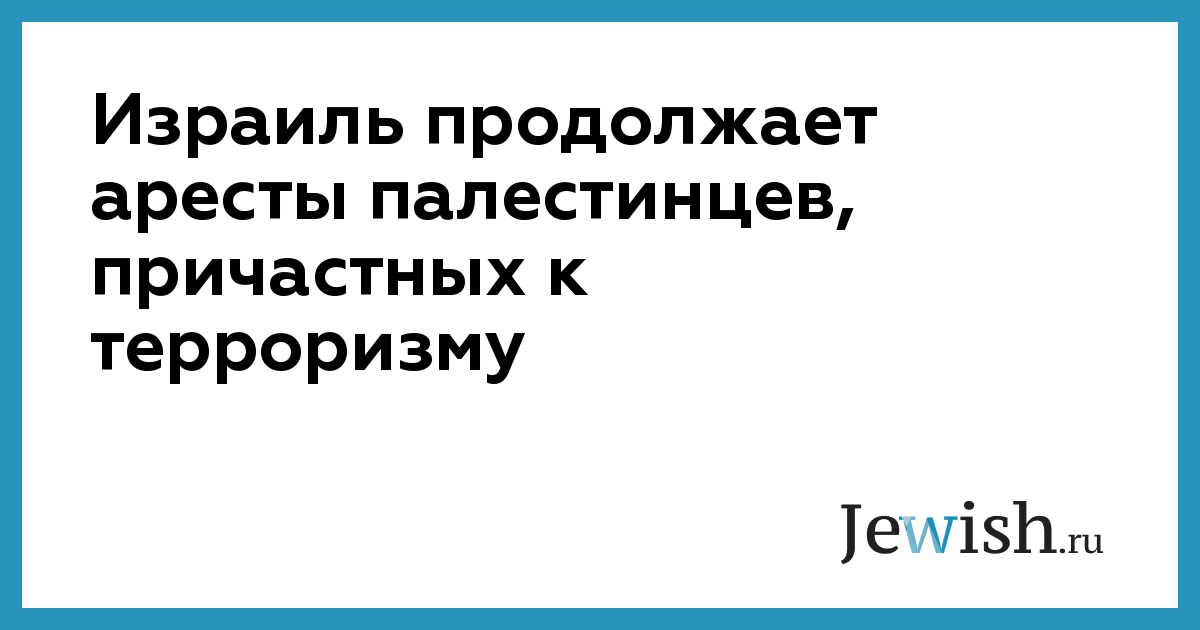 Израиль продолжает аресты палестинцев, причастных к терроризму