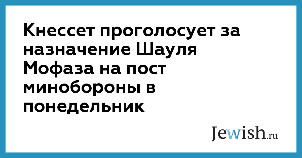 Кнессет проголосует за назначение Шауля Мофаза на пост минобороны в понедельник