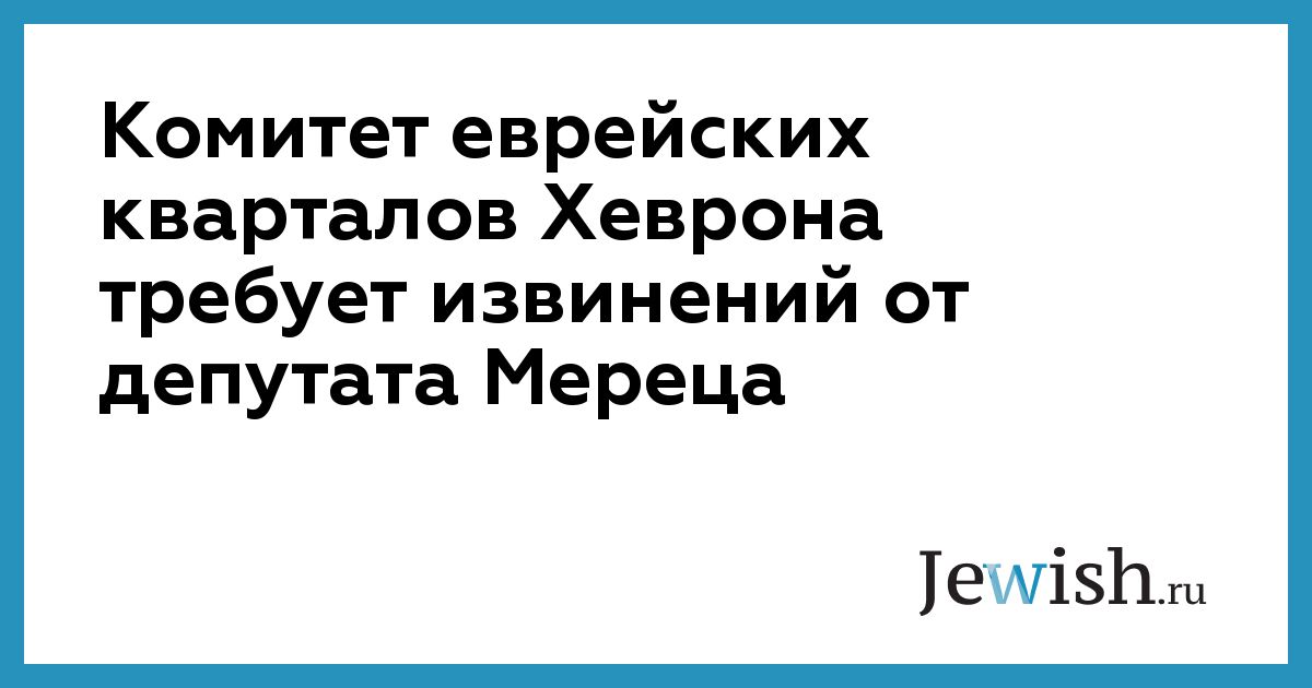 Комитет еврейских кварталов Хеврона требует извинений от депутата Мереца