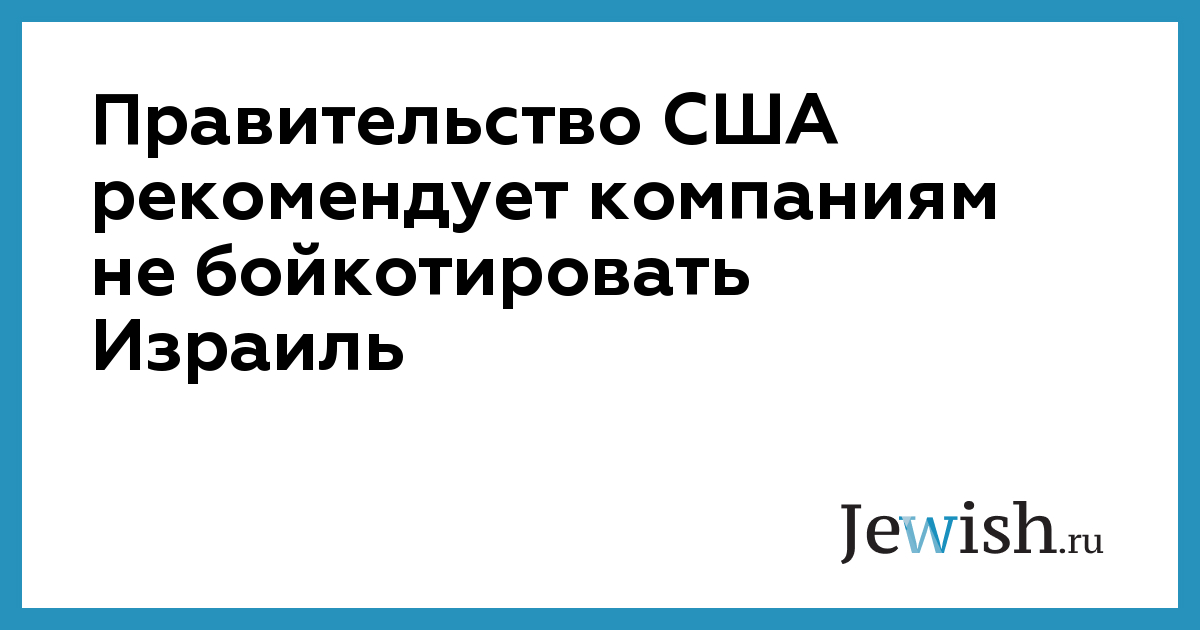 Правительство США рекомендует компаниям не бойкотировать Израиль