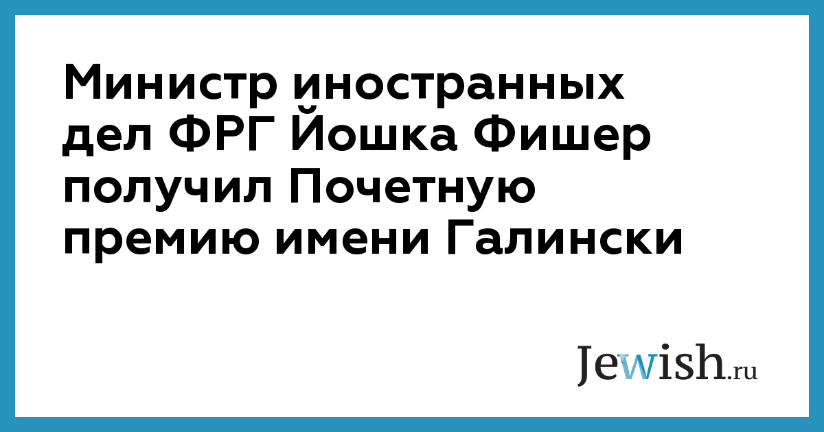 Министр иностранных дел ФРГ Йошка Фишер получил Почетную премию имени Галински