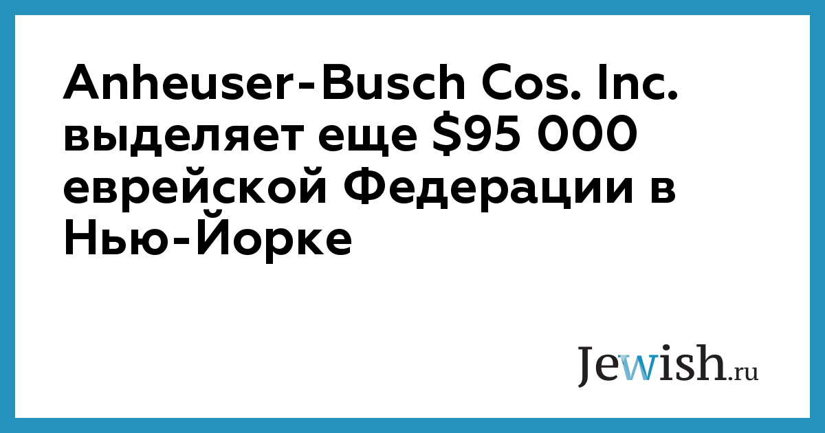 Anheuser-Busch Cos. Inc. выделяет еще $95 000 еврейской Федерации в Нью-Йорке