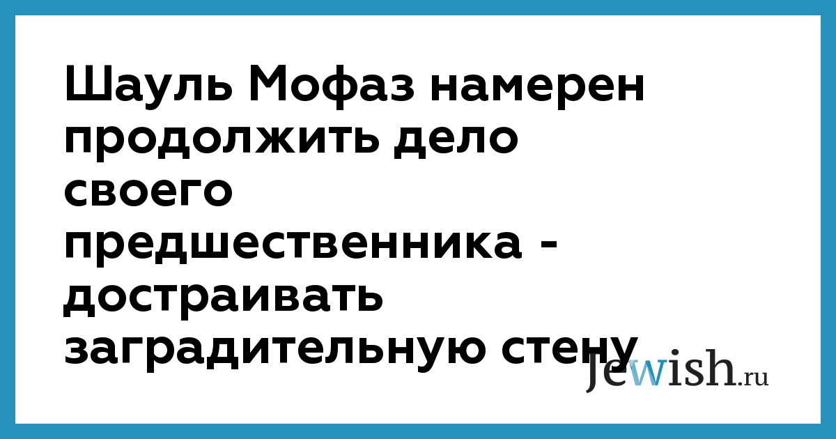 Шауль Мофаз намерен продолжить дело своего предшественника — достраивать заградительную стену