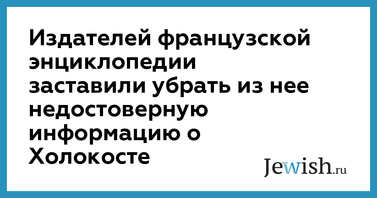 Издателей французской энциклопедии заставили убрать из нее недостоверную информацию о Холокосте