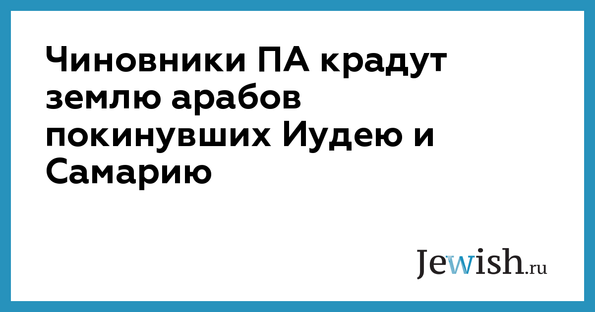 Чиновники ПА крадут землю арабов покинувших Иудею и Самарию