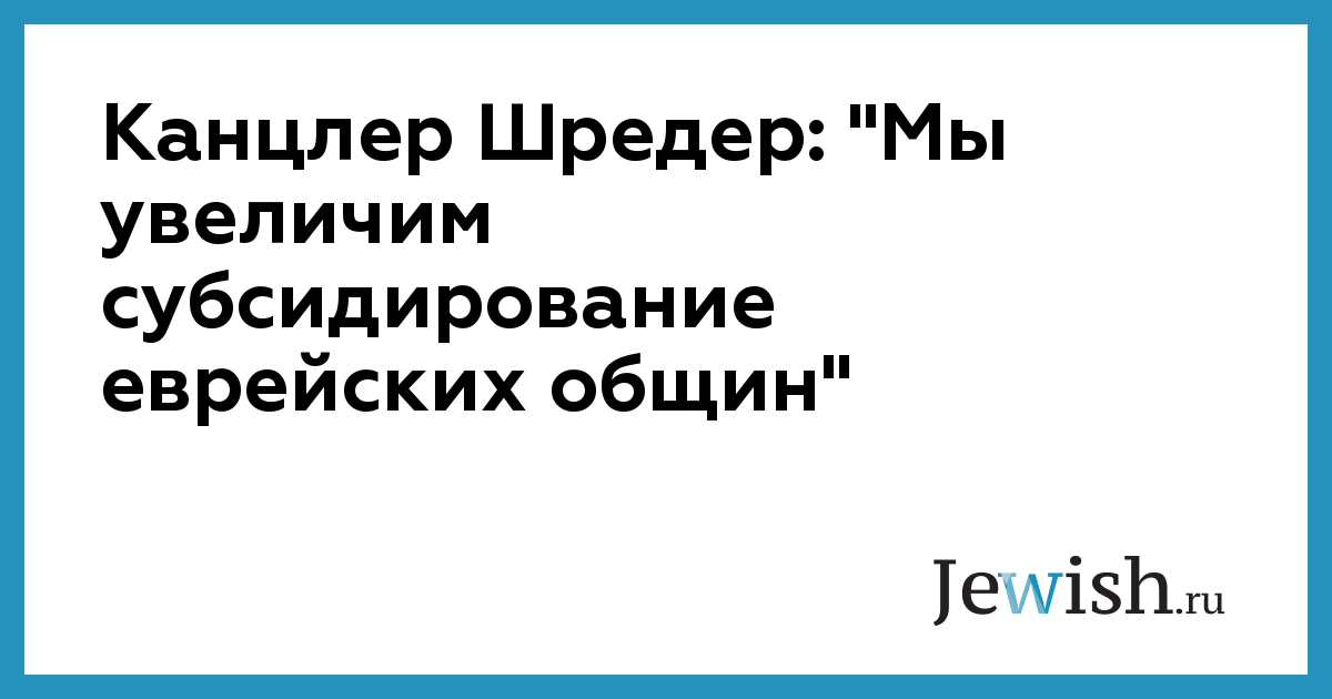Канцлер Шредер: "Мы увеличим субсидирование еврейских общин"