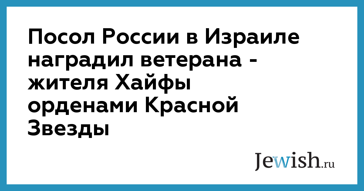 Посол России в Израиле наградил ветерана — жителя Хайфы орденами Красной Звезды