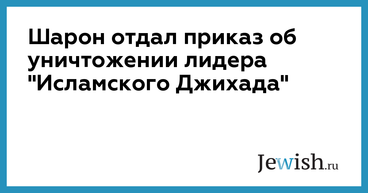 Шарон отдал приказ об уничтожении лидера "Исламского Джихада"