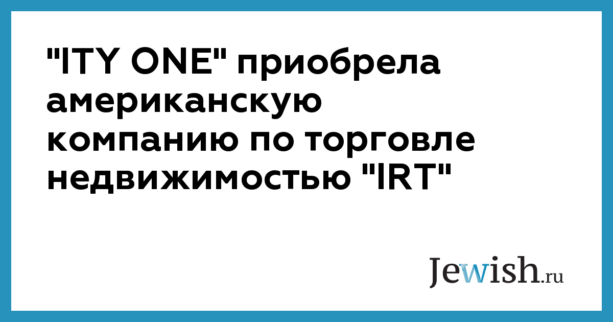 Израильская компания по торговле недвижимостью «Equity One» подписала контракт на приобретение американской компании по торговле недвижимостью «IRT Property» на сумму 426 миллионов долларов. Американская компания, со штаб-квартирой в Атланте (штат Джорджия), владеет более чем ста торговыми центрами на юго-востоке США. Это, по состоянию на сегодняшний день, самая крупномасштабная сделка, совершенная какой-либо израильской компанией на протяжении текущего года.