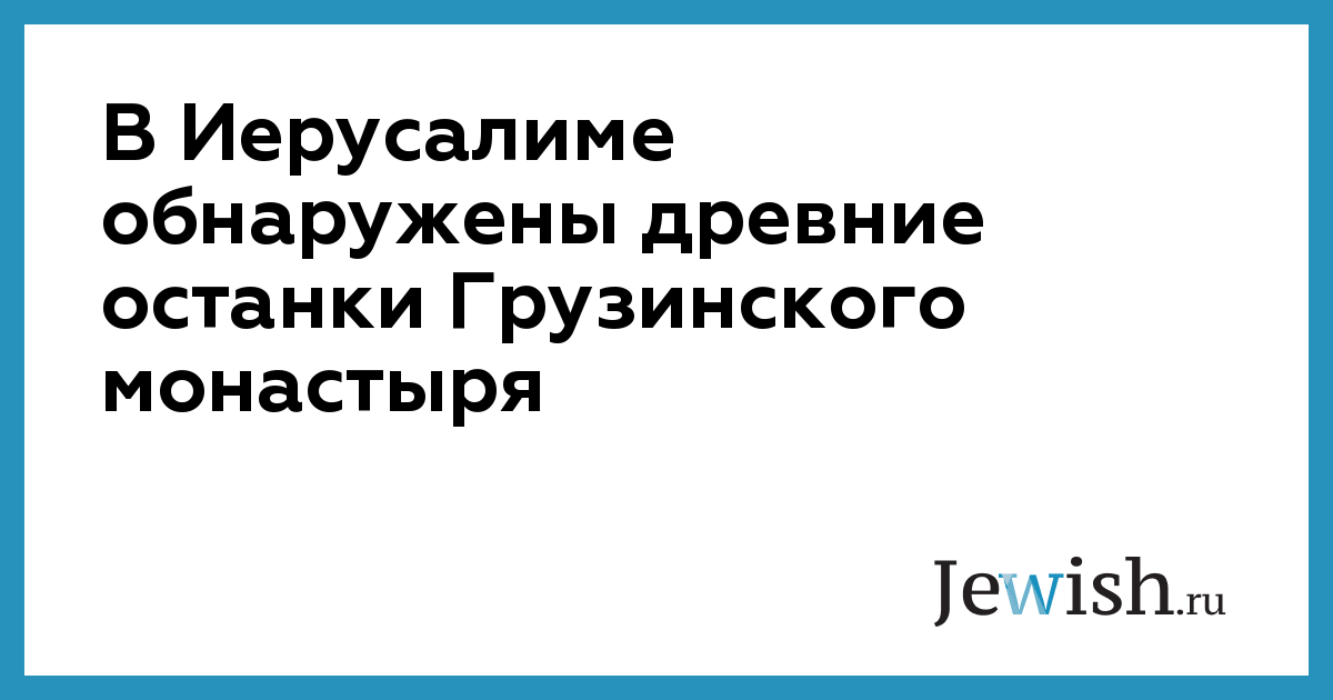 В Иерусалиме обнаружены древние останки Грузинского монастыря