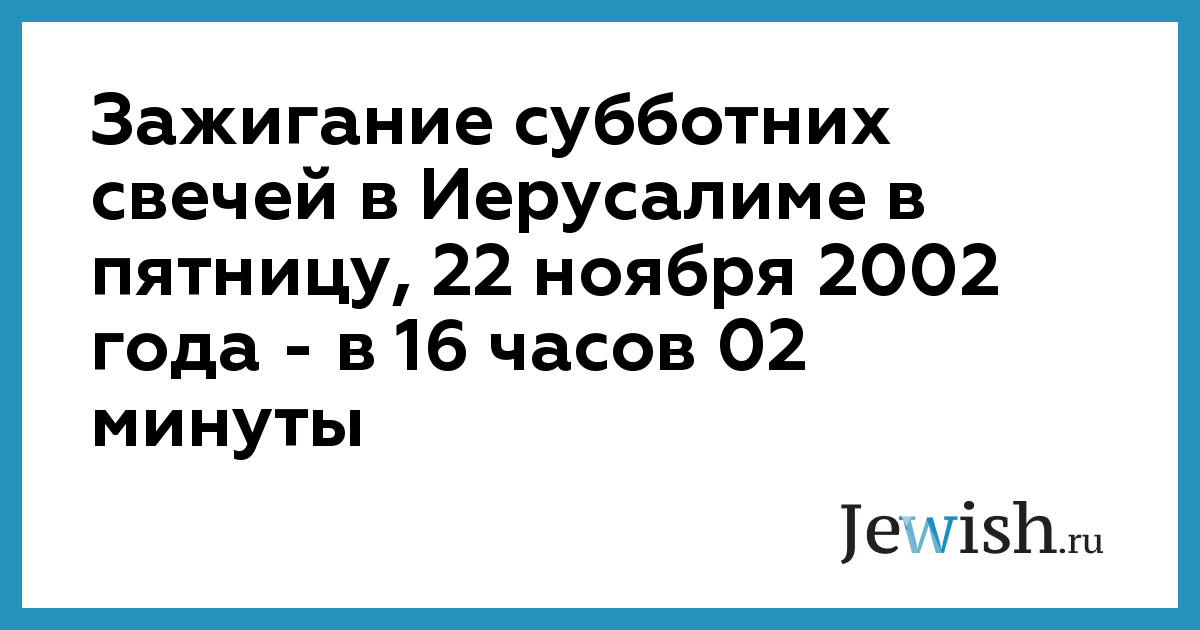 Зажигание субботних свечей в Иерусалиме в пятницу, 22 ноября 2002 года — в 16 часов 02 минуты