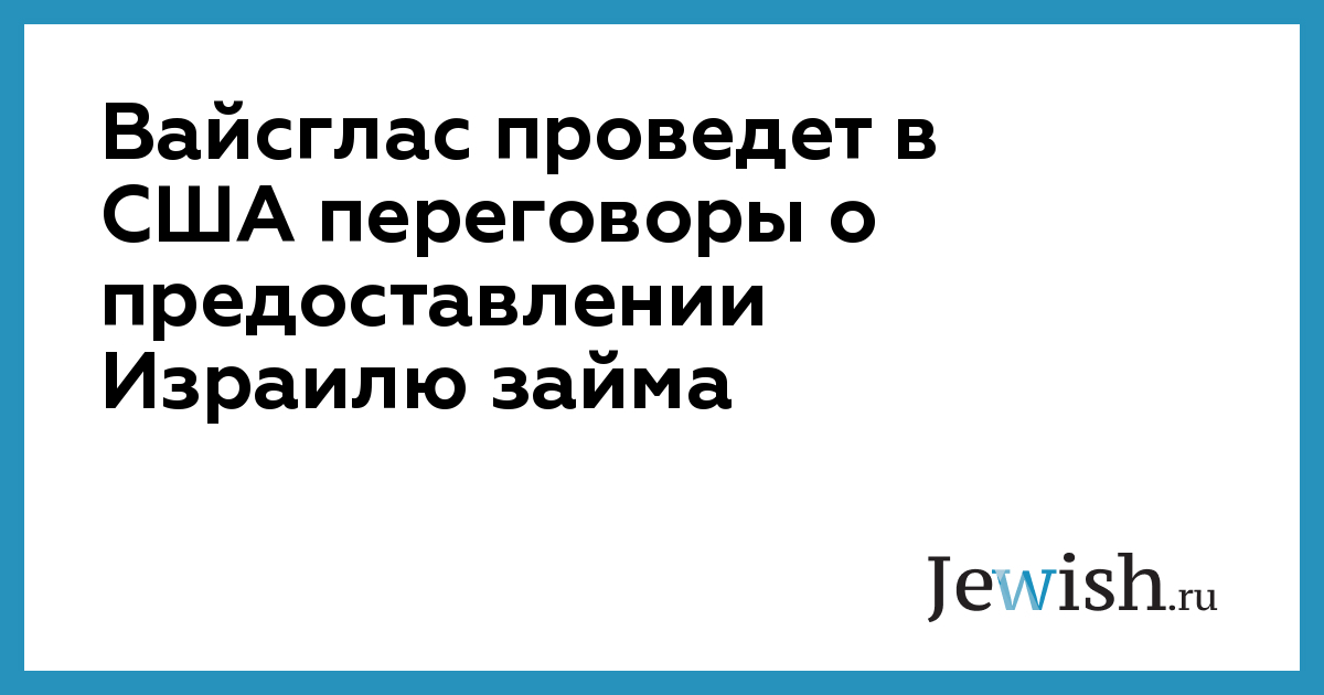 Вайсглас проведет в США переговоры о предоставлении Израилю займа
