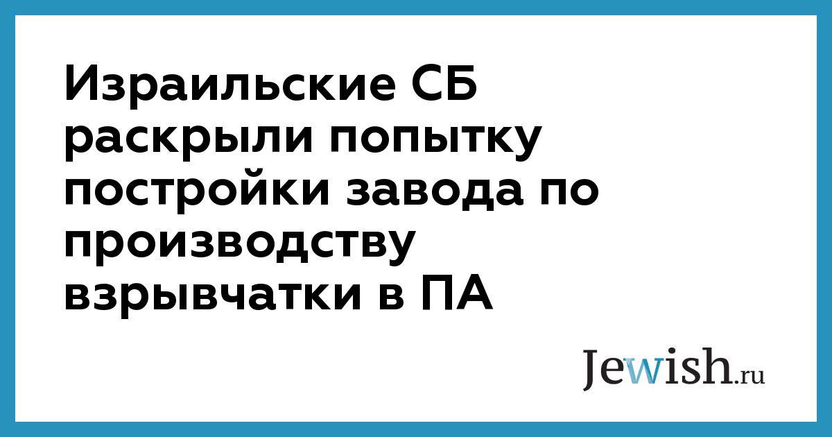 Израильские СБ раскрыли попытку постройки завода по производству взрывчатки в ПА