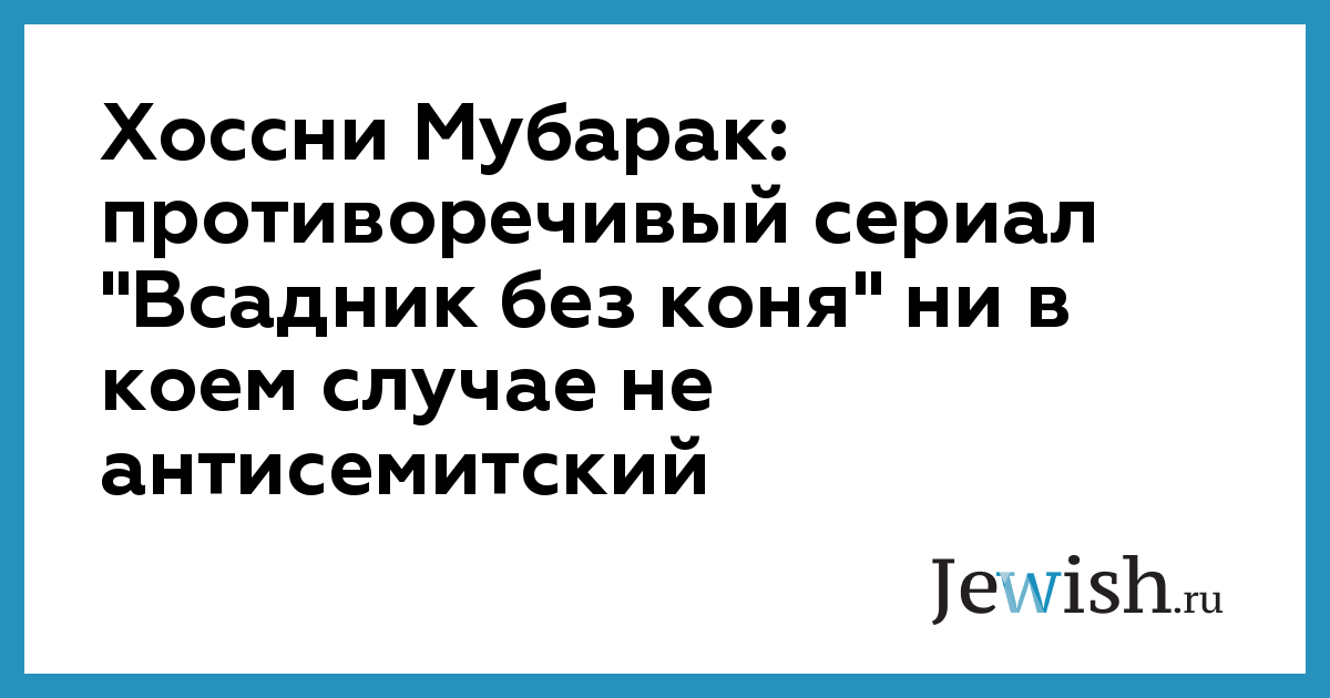 В своем письме Мубарак выразил сожаление по поводу трансляции на египетском телевидении сериала "Всадник без коня", столь сильно затронувший взгляды евреев, иудаизма и государства Израиль.
