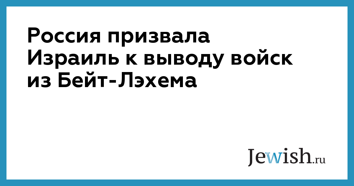 Россия призвала Израиль к выводу войск из Бейт-Лэхема