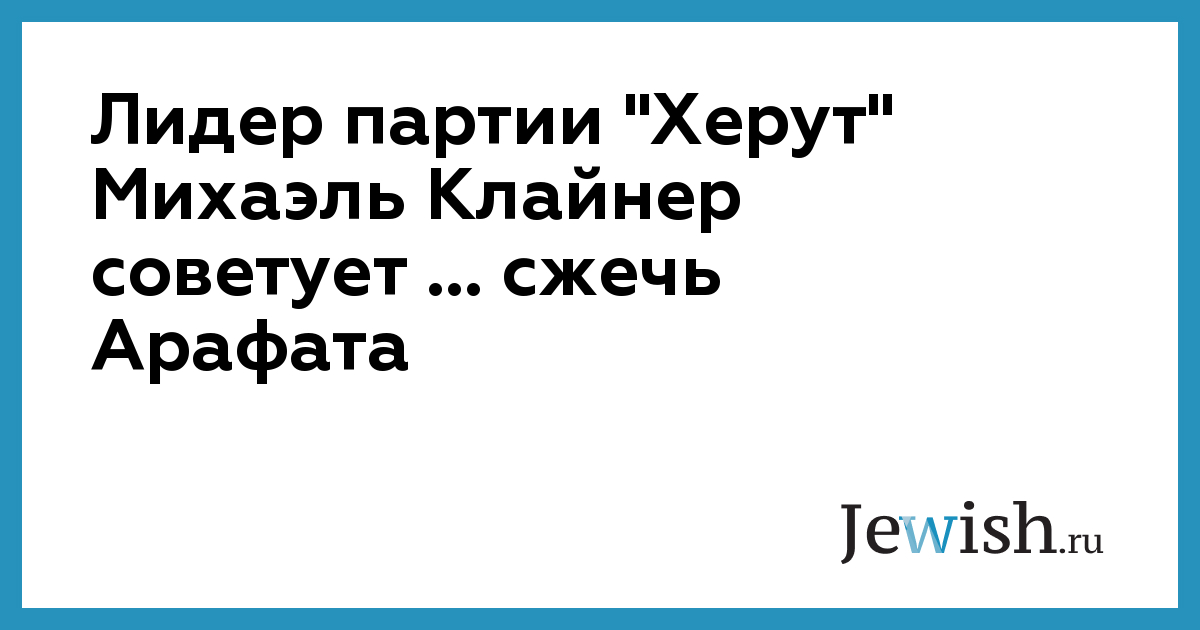 Лидер партии "Херут" Михаэль Клайнер советует ... сжечь Арафата