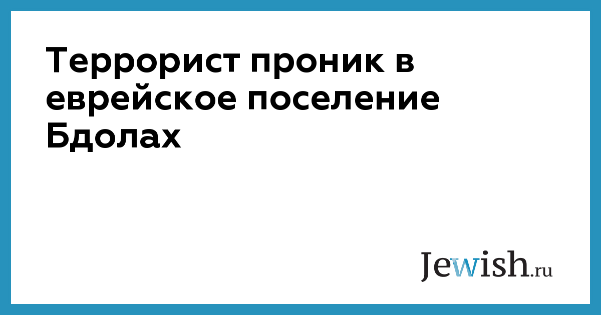 Террорист проник в еврейское поселение Бдолах