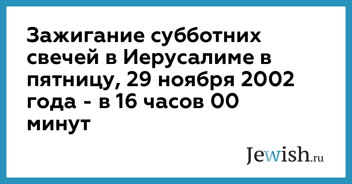 Зажигание субботних свечей в Иерусалиме в пятницу, 29 ноября 2002 года — в 16 часов 00 минут