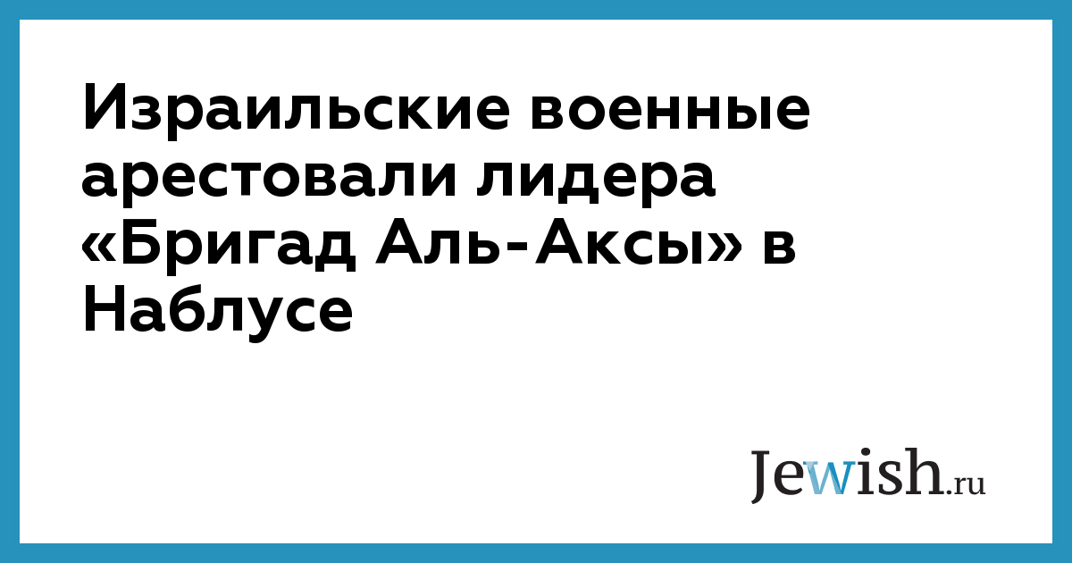 Израильские военные арестовали лидера «Бригад Аль-Аксы» в Наблусе