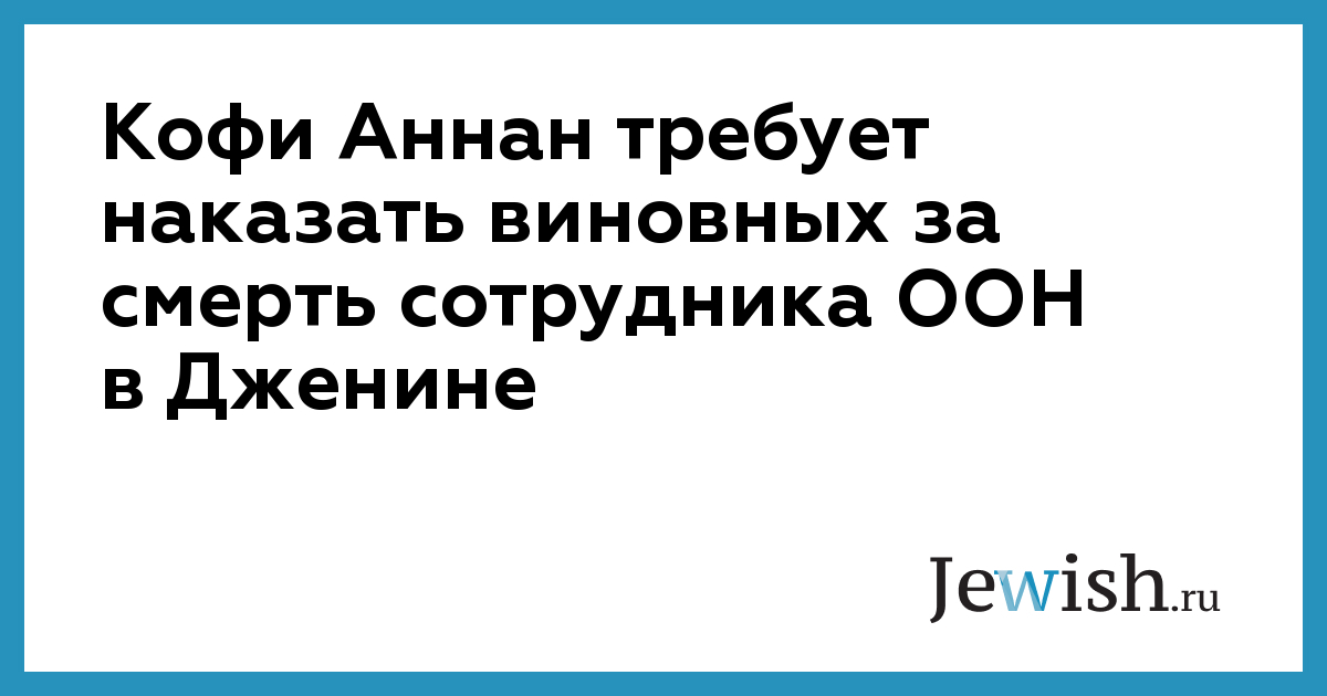 Кофи Аннан требует наказать виновных за смерть сотрудника ООН в Дженине