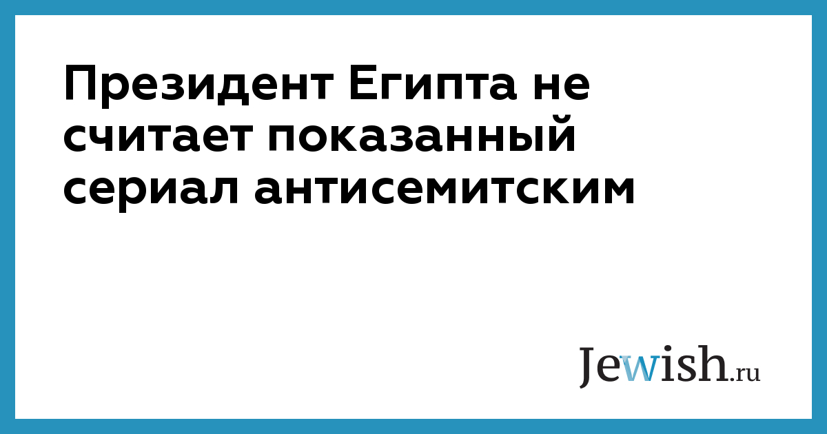 Президент Египта не считает показанный сериал антисемитским