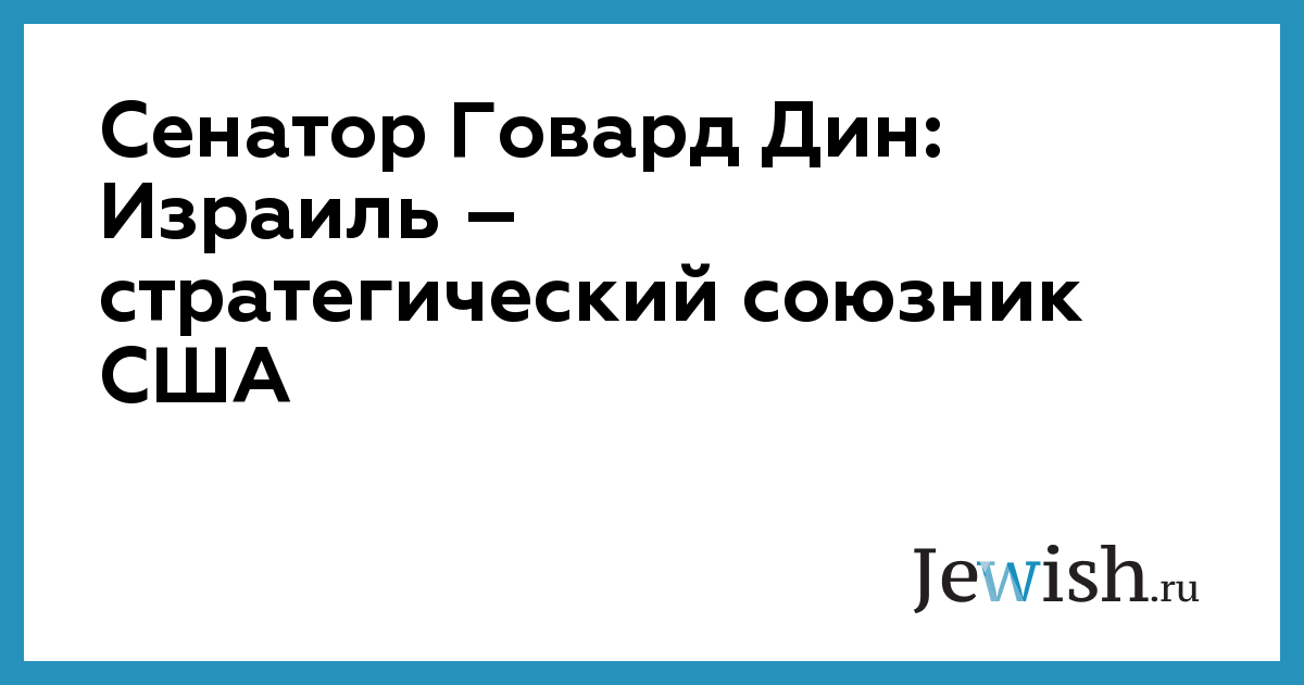 Сенатор Говард Дин: Израиль – стратегический союзник США