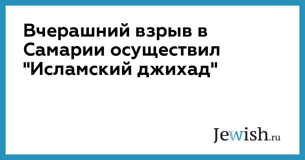 Вчерашний взрыв в Самарии осуществил "Исламский джихад"