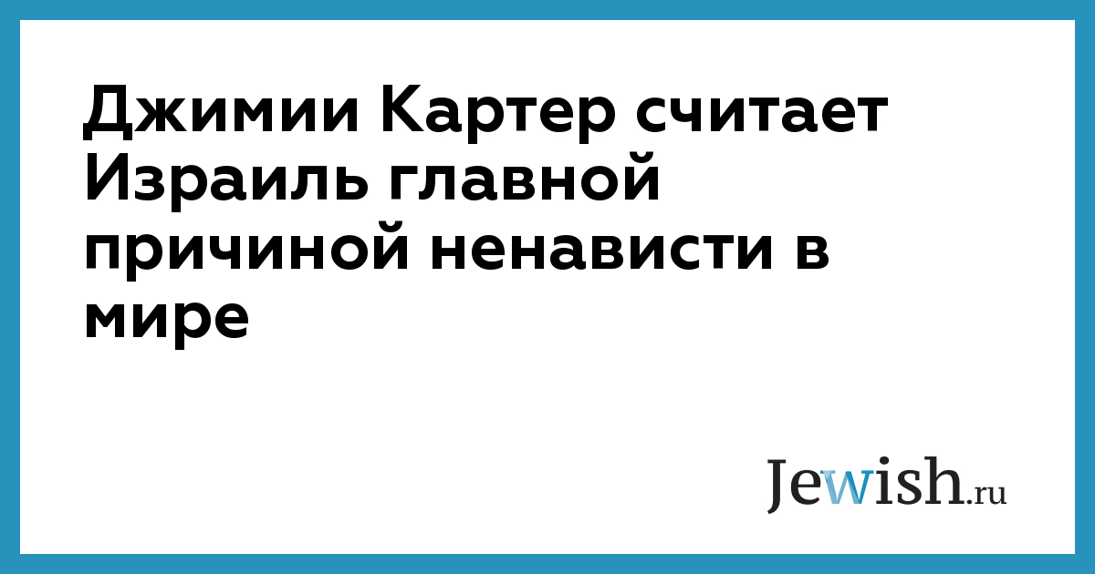 Джимии Картер считает Израиль главной причиной ненависти в мире