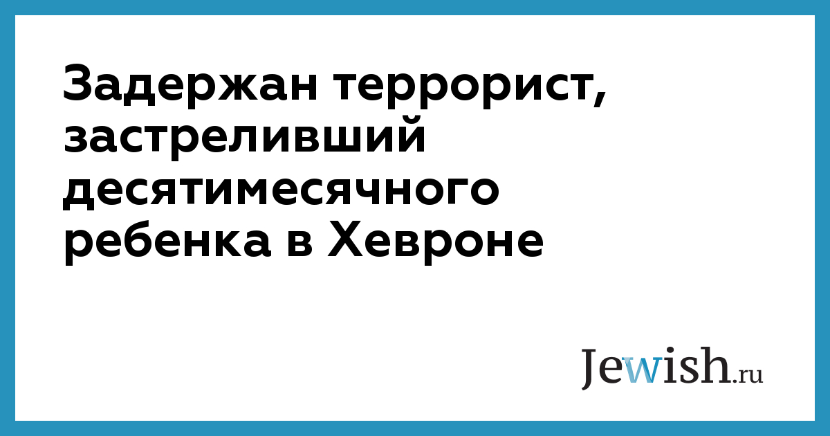 Задержан террорист, застреливший десятимесячного ребенка в Хевроне