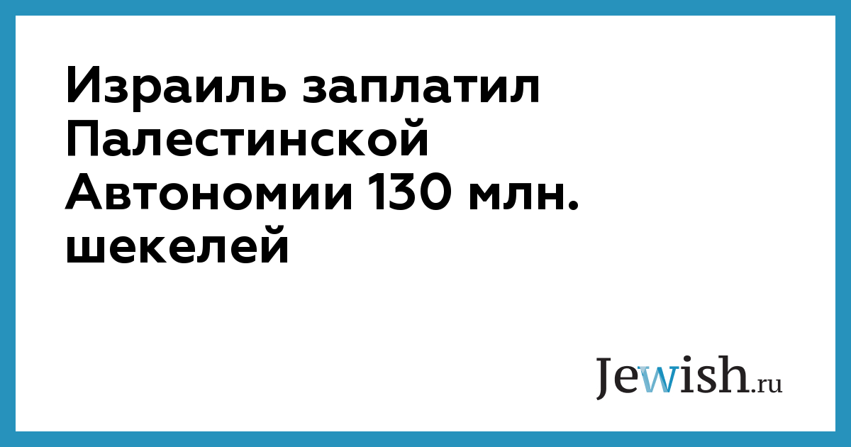 Израиль заплатил Палестинской Автономии 130 млн. шекелей