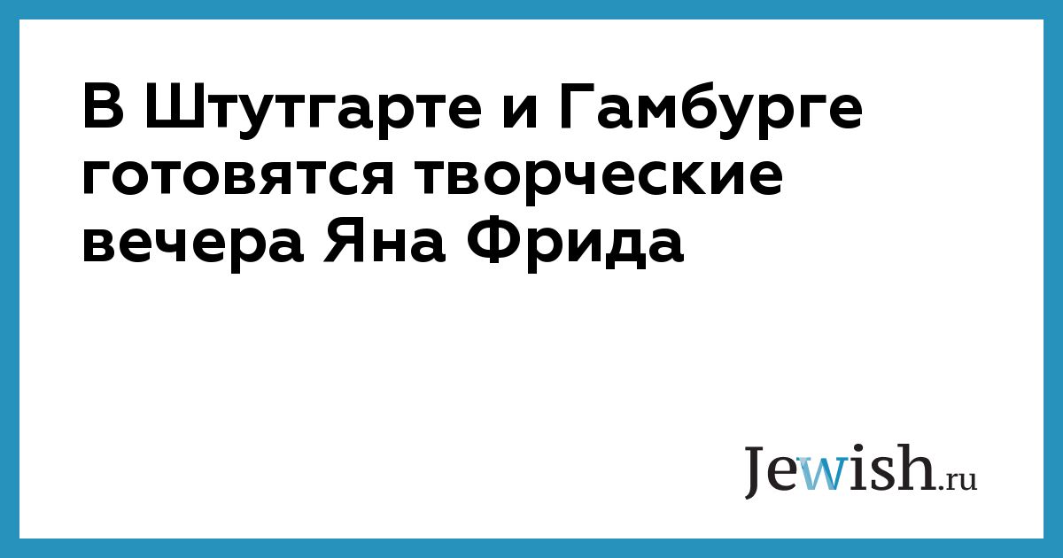 В Штутгарте и Гамбурге готовятся творческие вечера Яна Фрида
