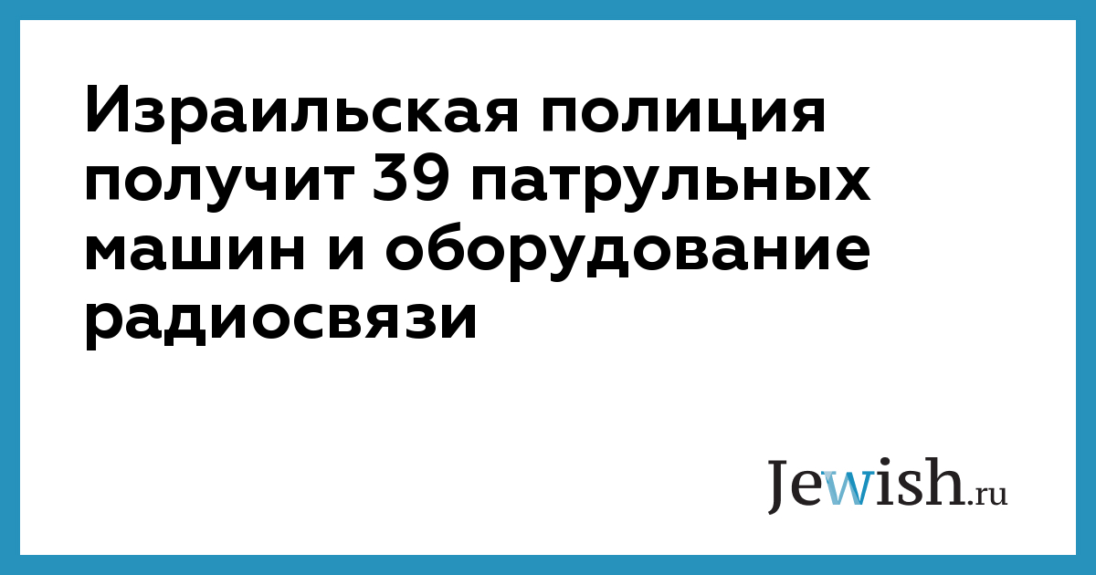 Израильская полиция получит 39 патрульных машин и оборудование радиосвязи