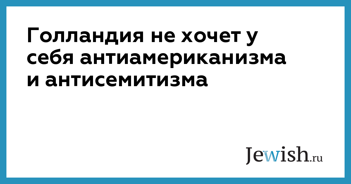 Голландия не хочет у себя антиамериканизма и антисемитизма