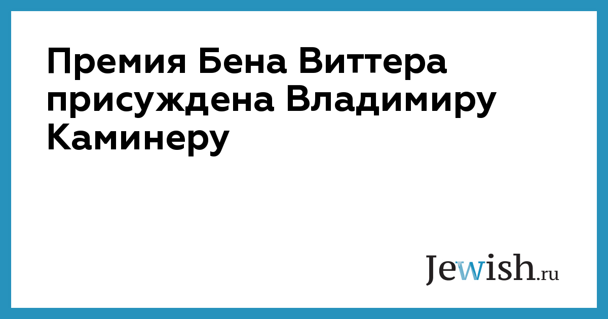 В минувшую пятницу в Гамбурге состоялось вручение премии Бена Виттера, присуждаемой за достижения в области культуры. В этом году ее удостоен бывший москвич, а ныне – берлинский писатель и журналист Владимир Каминер. Фонд имени известного гамбургского писателя и публициста газеты Die Zeit Бена Виттера (Ben-Witter-Stiftung), скончавшегося в 1993 году, ежегодно присуждает специальную премию для поддержки талантливых представителей литературы и искусства. На этот раз выбор правления фонда пал на 36-летнего Владимира Каминера, который стал известен читающей публике некоторое время назад благодаря книге «Russendisko». В настоящее время на его счету уже несколько книг, и все они написаны по-немецки. Наш соотечественник стал восьмым по счету лауреатом премии Бена Виттера, которая в денежном эквиваленте выражается суммой 15 500 евро. Владимир Каминер родился в Москве в 1966 году, получил образование по специальностям звукорежиссера и драматурга. С 1990 года живет в Берлине, пишет книги, регулярно печатается на страницах Frankfurter Allgemeine Zeitung, TAZ и других немецких газет.