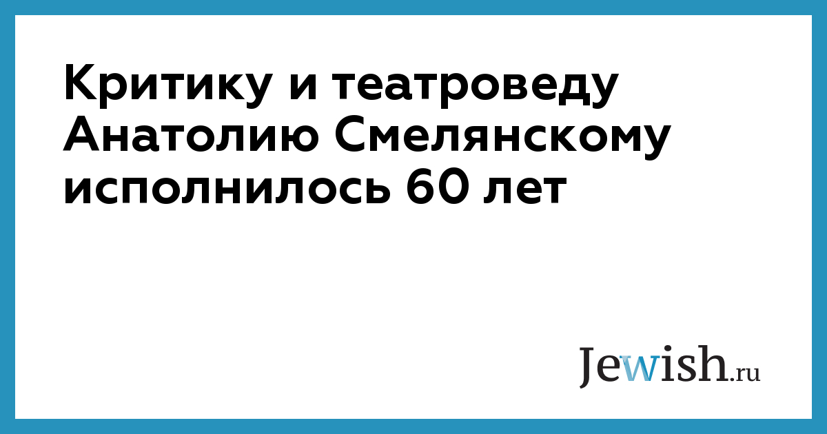 Критику и театроведу Анатолию Смелянскому исполнилось 60 лет