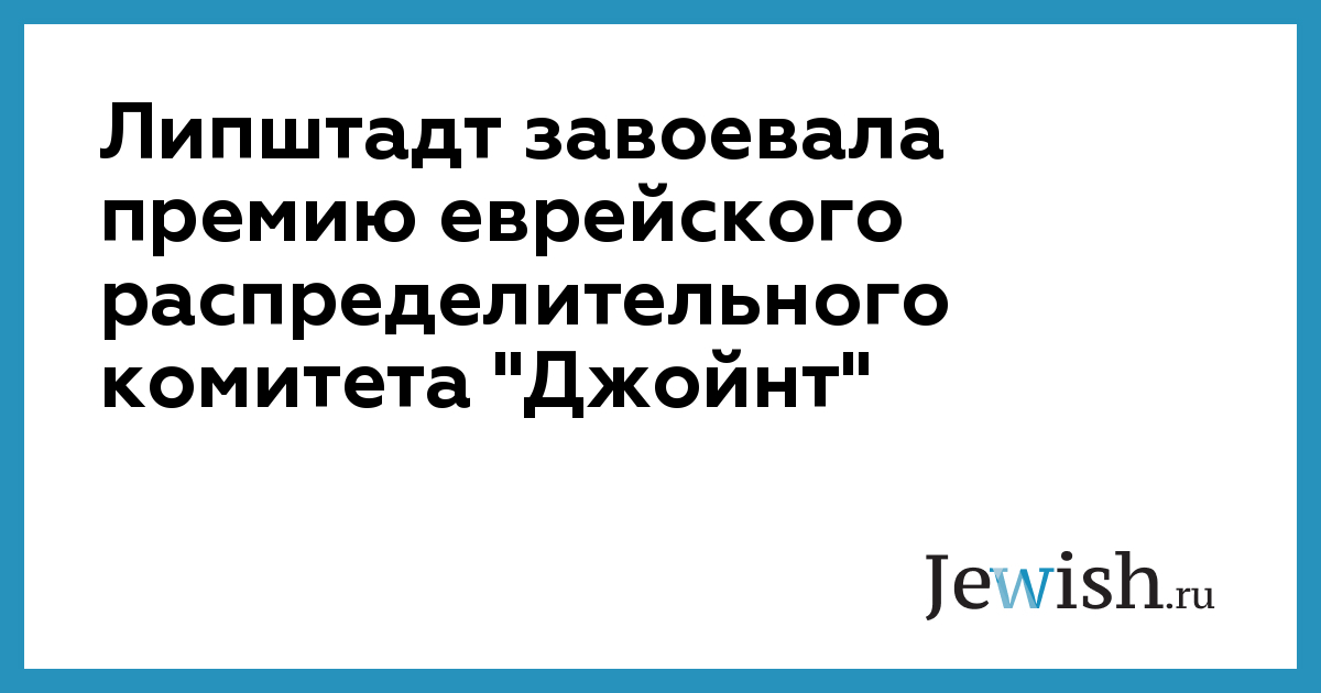 Липштадт завоевала премию еврейского распределительного комитета "Джойнт"