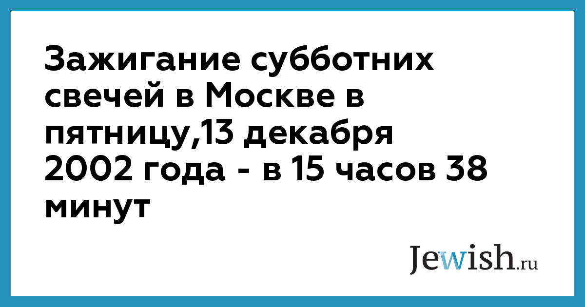 Зажигание субботних свечей в Москве в пятницу,13 декабря 2002 года — в 15 часов 38 минут