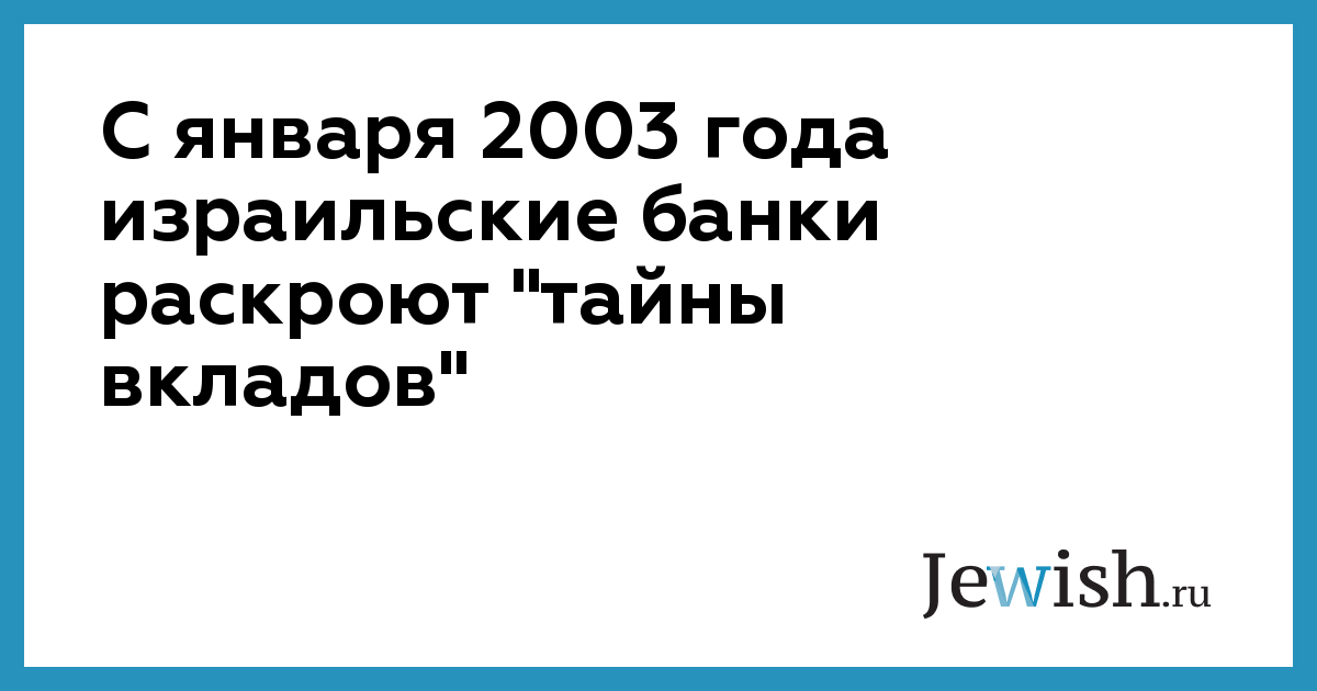 С января 2003 года израильские банки раскроют "тайны вкладов"