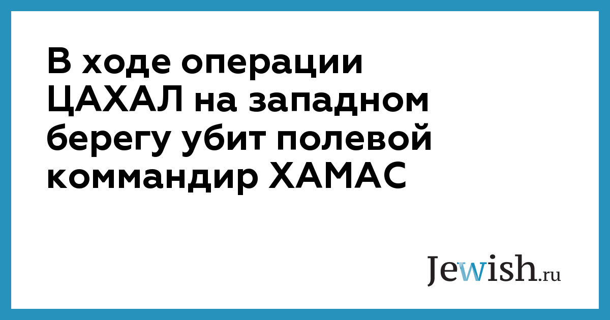 В ходе операции ЦАХАЛ на западном берегу убит полевой коммандир ХАМАС