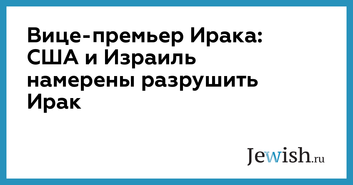 Вице-премьер Ирака: США и Израиль намерены разрушить Ирак