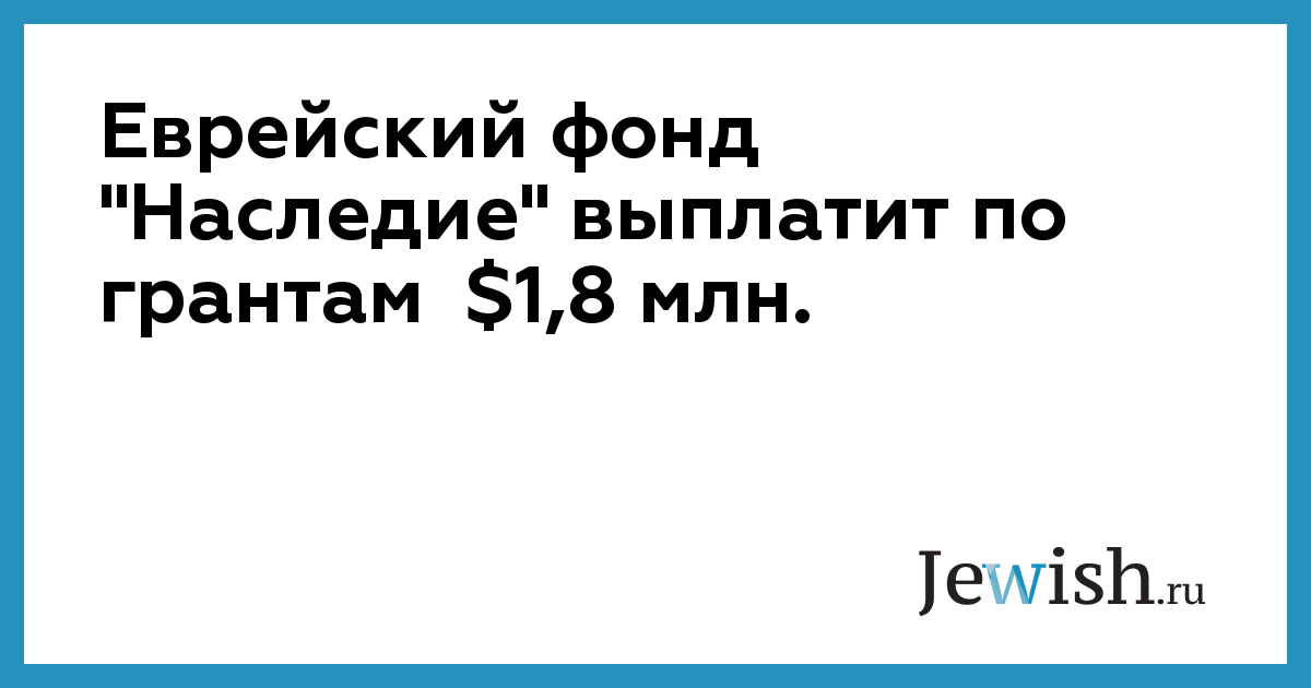 Еврейский фонд "Наследие" выплатит по грантам $1,8 млн.