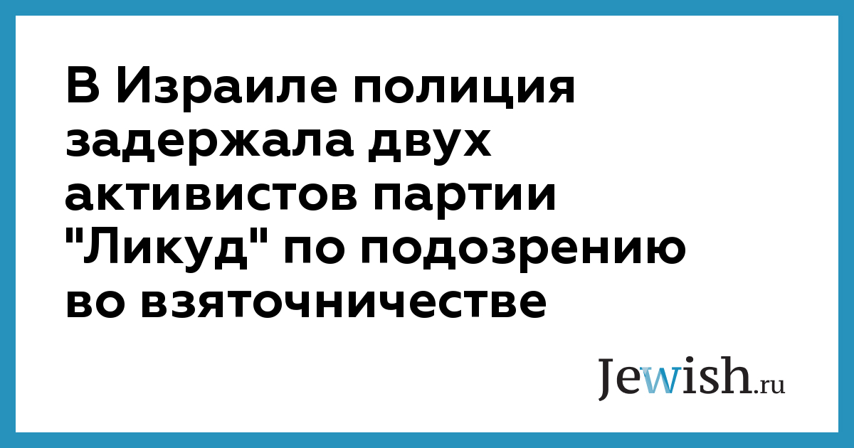В Израиле полиция задержала двух активистов партии "Ликуд" по подозрению во взяточничестве