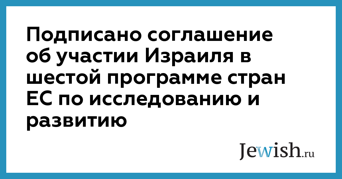 Подписано соглашение об участии Израиля в шестой программе стран ЕС по исследованию и развитию